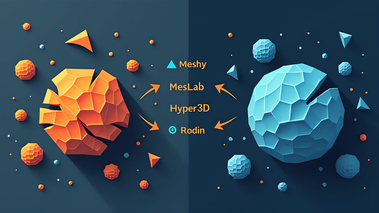AIベース(ニューラルネット使用): Meshy Remesh、Hyper3D Rodin。深層学習モデルがメッシュのトポロジー・形状を学習し、最適化する。「再構築」「トポロジー再計算」が得意で、生スキャンから一段クリーンなメッシュを生み出せる。