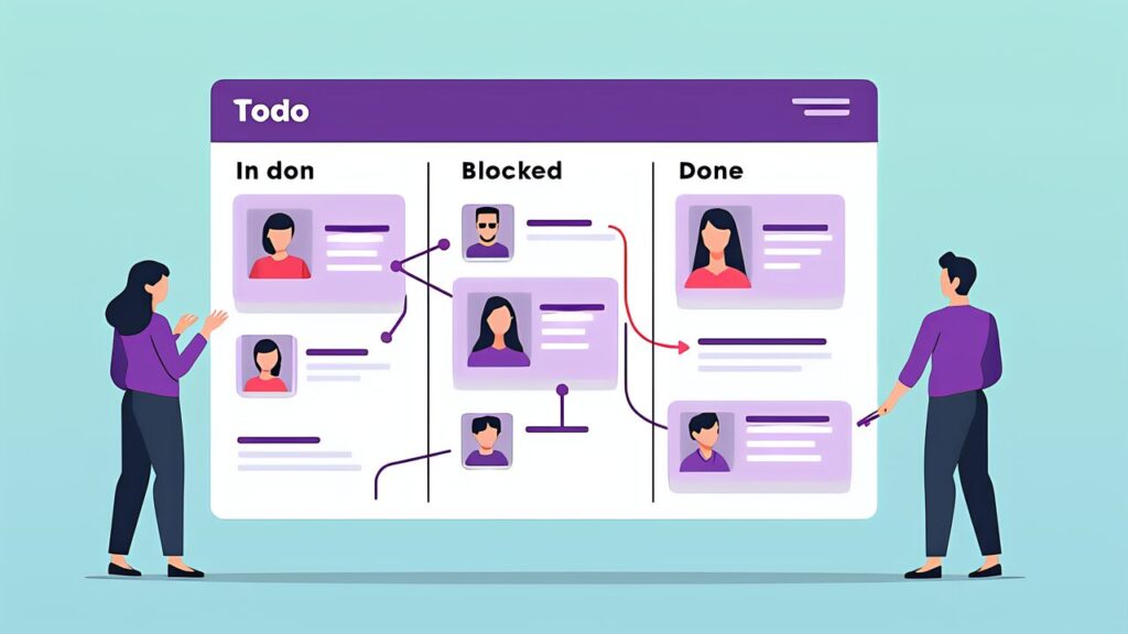 An agent in the in-progress state executes the actual task. If a dependency on another task is discovered midway, the status transitions to blocked and a new dependency task is created. Once the dependency reaches done, it automatically returns from blocked to in-progress.