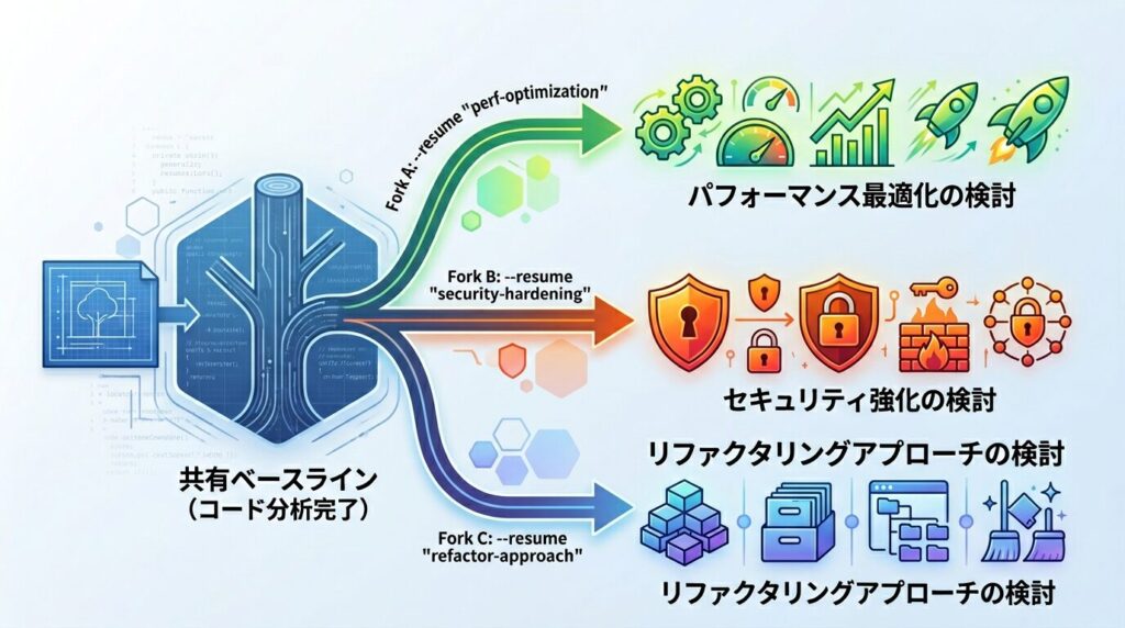 fork_session creates independent branches from a shared analysis baseline.