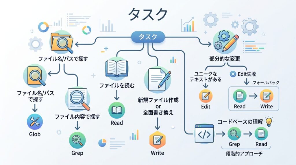 | Glob | File path pattern matching | Finding files by name/extension (**/*.test.ts) |