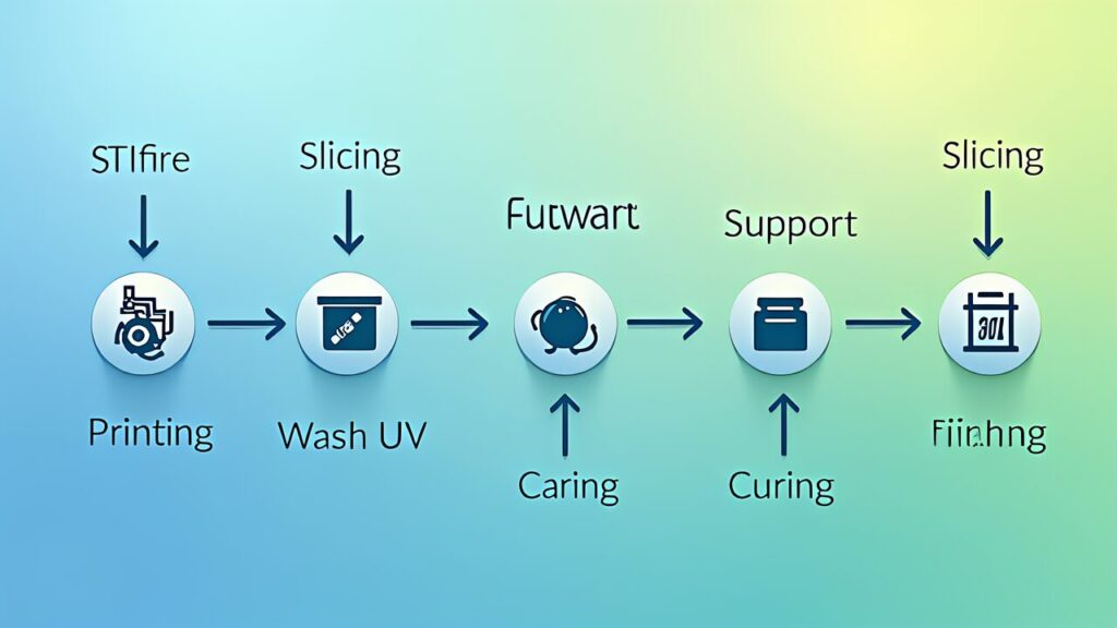Here’s the complete resin printing workflow from digital model to finished part. Unlike FDM, resin introduces unique steps that require careful execution.