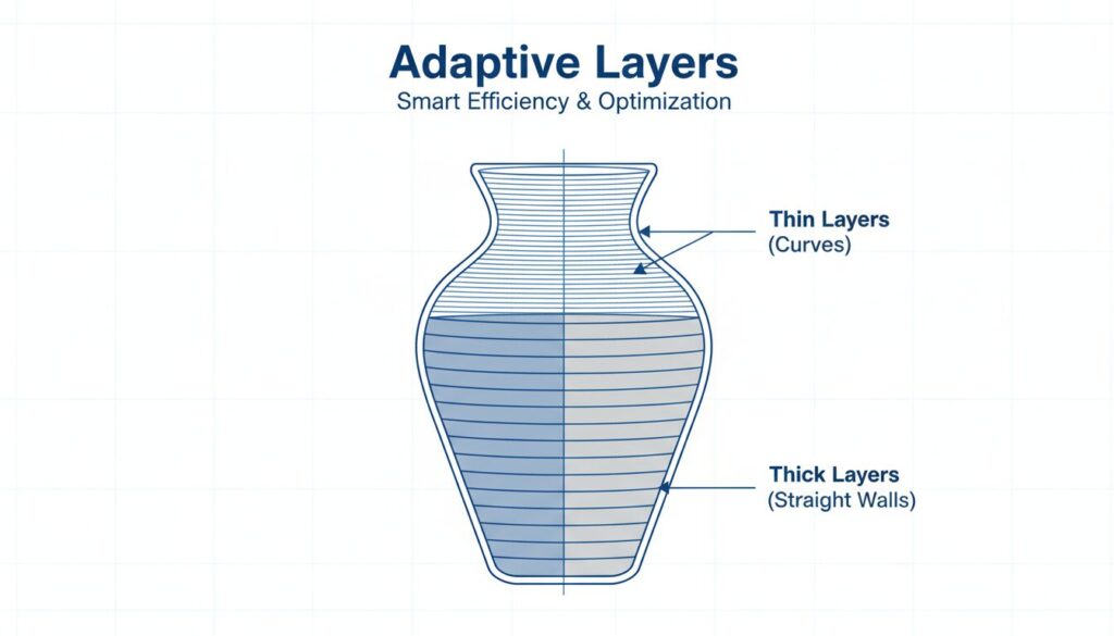 そこで使うのが 「適応積層ピッチ (Adaptive Layers / Variable Layer Height)」 です。