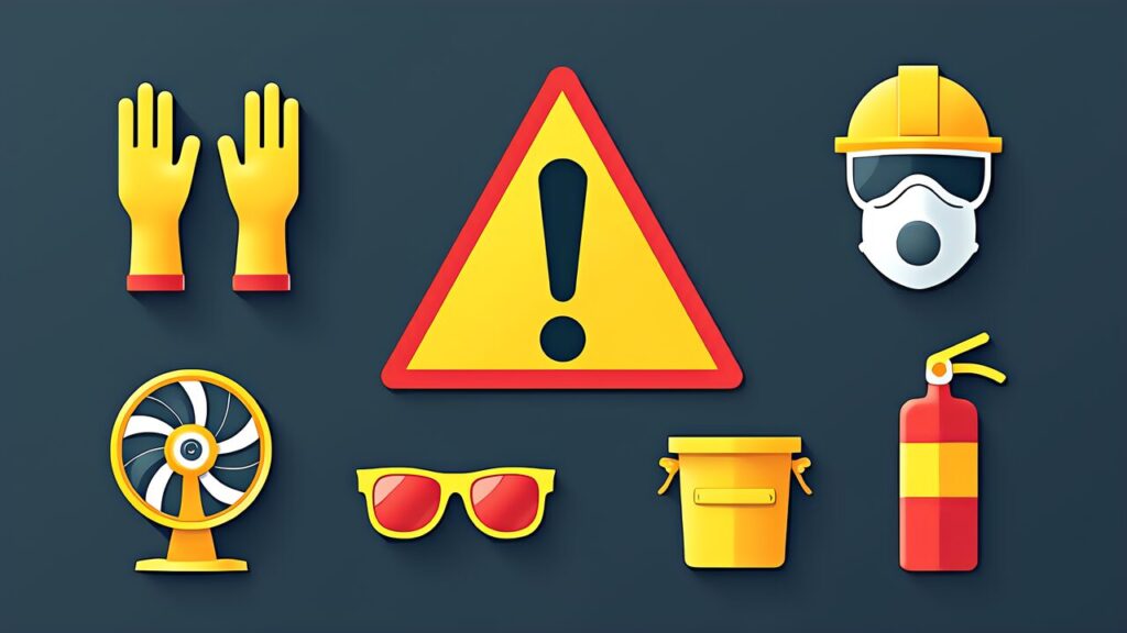 レジン3Dプリント 後処理 洗浄 UV硬化 2026の解説において、安全管理を最後に回したのは意図的だ。最も記憶に残る位置に配置することで、読者の注意を引きたい。レジンの取り扱いには、FDMのフィラメントとは比較にならないレベルの安全配慮が必要だ。「レジン3Dプリント 品質管理とAI検知 2026」でも品質管理の文脈で安全性に触れているが、ここでは後処理に特化した安全対策を整理する。